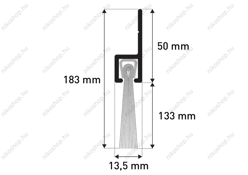 "h" natúr alu profilos kefetömítés 133 mm-es sörtével